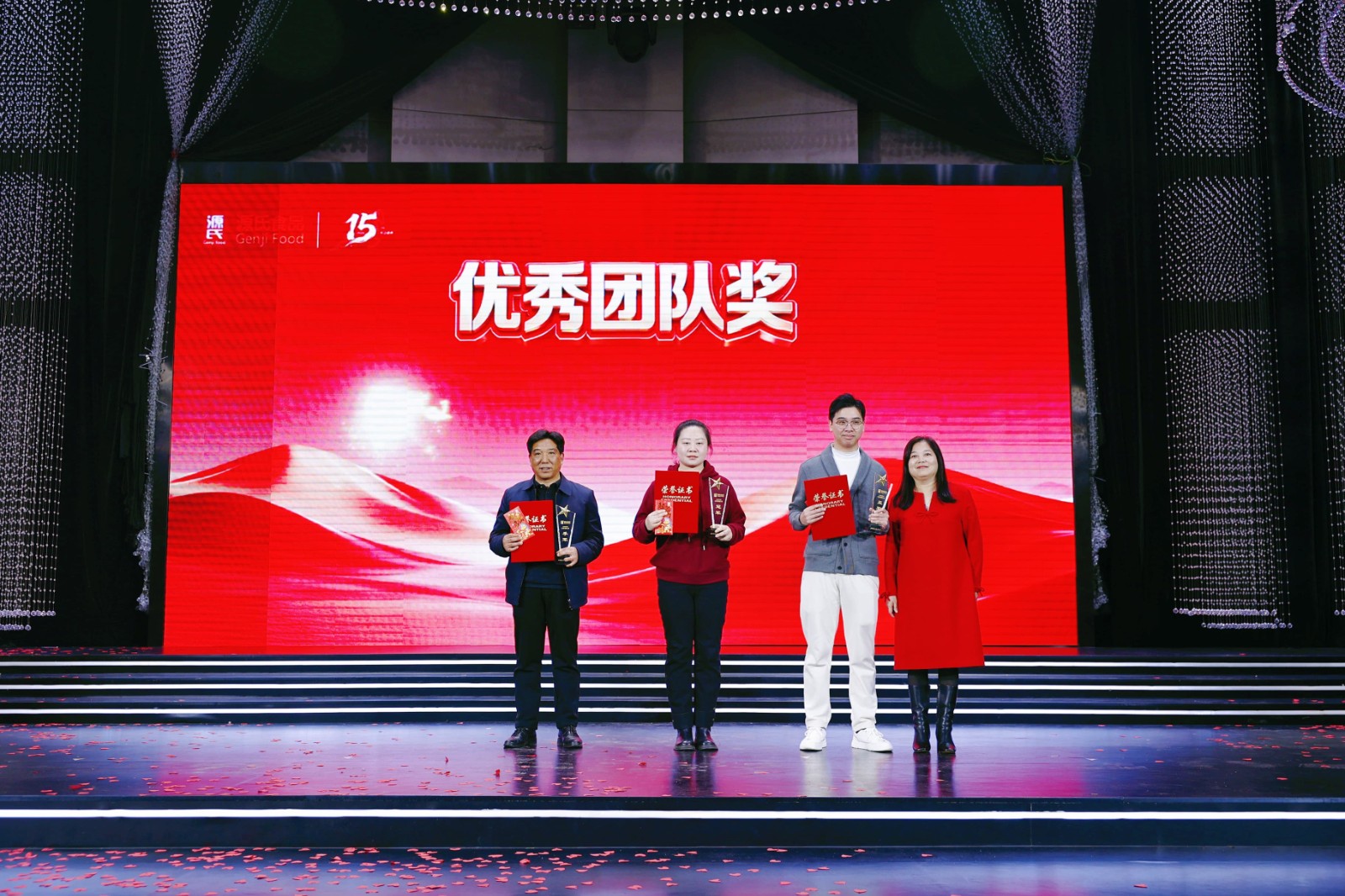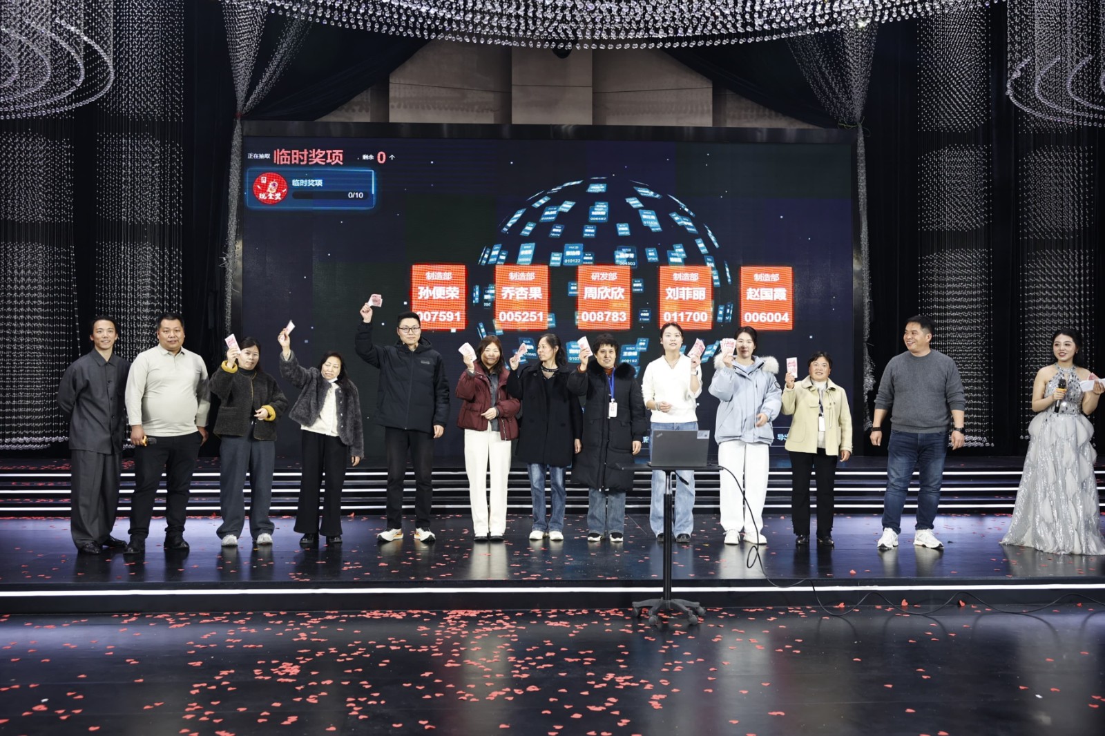 海爾冰箱、洗衣機(jī)、熱水器、電飯煲……從大宗家電到實(shí)用家居,公司為大家貼心考慮,設(shè)立六等獎(jiǎng)至一等獎(jiǎng)層層遞進(jìn),獎(jiǎng)品及獎(jiǎng)金池共計(jì)70余萬(wàn)元。此外,本次年會(huì)特設(shè)立15周年特別抽獎(jiǎng)環(huán)節(jié),為不同工齡的員工送上專屬福利,圍桌獎(jiǎng)、現(xiàn)場(chǎng)合作伙伴傾情“加碼”的數(shù)萬(wàn)元現(xiàn)金大獎(jiǎng)讓幸運(yùn)覆蓋全場(chǎng),歡聲笑語(yǔ)間,傳遞著源氏大家庭的溫暖與關(guān)懷。節(jié)目表演獎(jiǎng)的頒發(fā),更致敬每一位臺(tái)前幕后的表演者,讓熱愛(ài)與付出皆有回響。