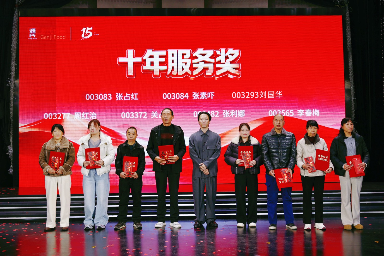 盛典現(xiàn)場(chǎng)對(duì)公司新銳獎(jiǎng)、優(yōu) 秀員工獎(jiǎng)、優(yōu) 秀管理干部獎(jiǎng)、優(yōu) 秀團(tuán)隊(duì)獎(jiǎng)等多個(gè)獎(jiǎng)項(xiàng)進(jìn)行表彰,為3年、5年、10年乃至15年資 深員工頒發(fā)服務(wù)獎(jiǎng),品控部陽(yáng)述東經(jīng)理獲頒專屬的十五年服務(wù)獎(jiǎng)。每一份榮譽(yù)都是對(duì)源氏人實(shí)干與堅(jiān)守的肯定。