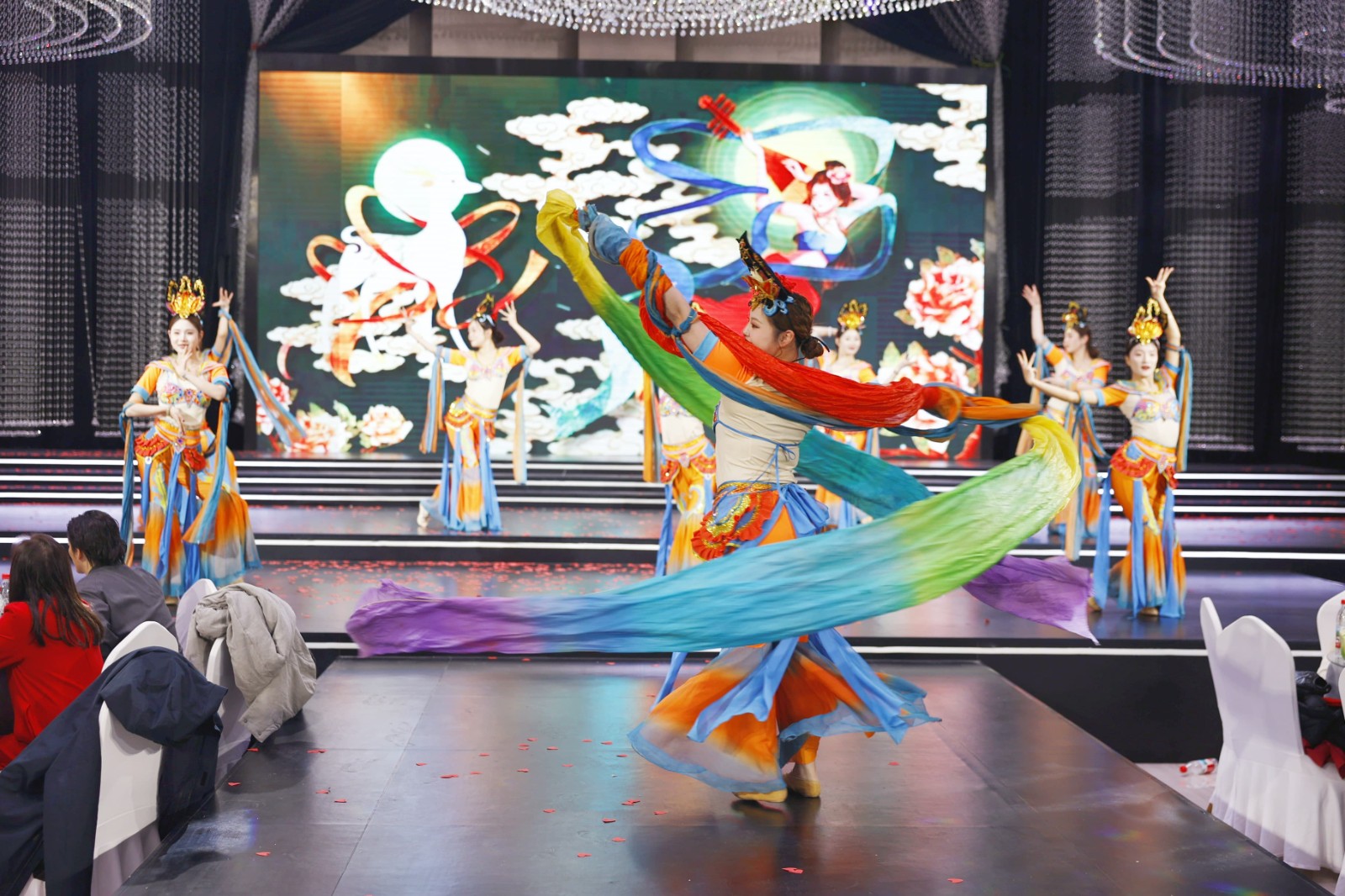 員工自編自演的節(jié)目輪番登場(chǎng),舞蹈《歡樂(lè)的跳吧》《好運(yùn)全來(lái)》點(diǎn)燃現(xiàn)場(chǎng)氛圍,越調(diào)《四千歲你莫要羞愧難當(dāng)》、豫劇《朝陽(yáng)溝》盡顯傳統(tǒng)文化魅力,合唱《水手》唱出奮斗初心,相聲《馬年新說(shuō)》融合傳統(tǒng)與新潮,情景劇《我要暴富》詼諧幽默,演繹電商賣貨的感染力,朗誦《我們的擔(dān)當(dāng)》詮釋源氏人的責(zé)任與堅(jiān)守。敦煌一夢(mèng)、我的新衣等友情表演更將盛典氛圍推向高 潮,臺(tái)下掌聲雷動(dòng),臺(tái)上星光閃耀,每一個(gè)節(jié)目都是源氏人多才多藝、凝心聚力的生動(dòng)體現(xiàn)。